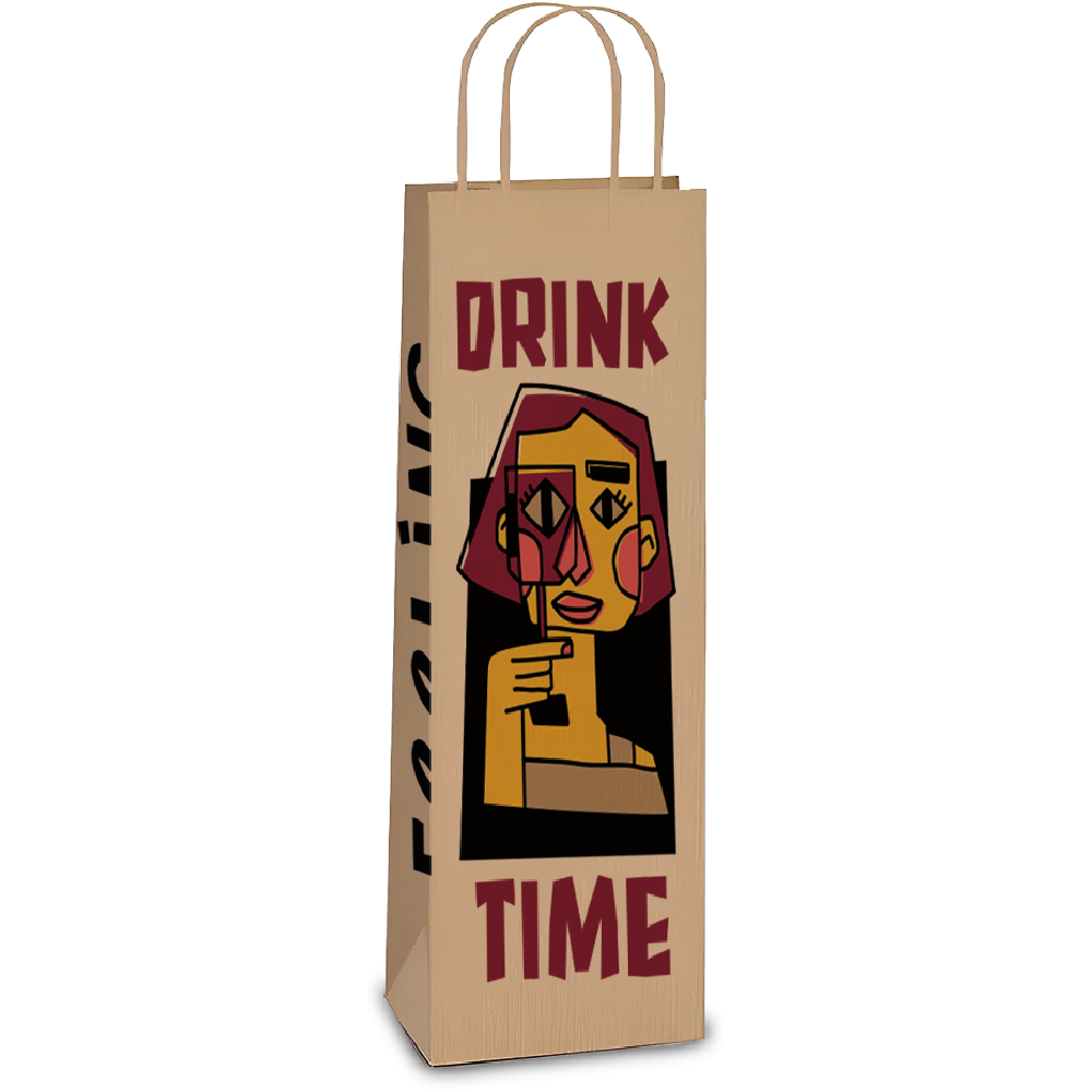 SACOLA KRAFT GARRAFA 34X14X8 DRINK TIME 01X10