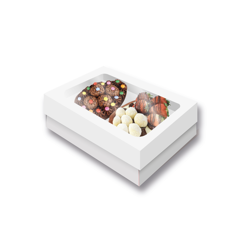 CAIXA 2 OVOS TAMPA COM VISOR P PÁSCOA BRANCA LISA