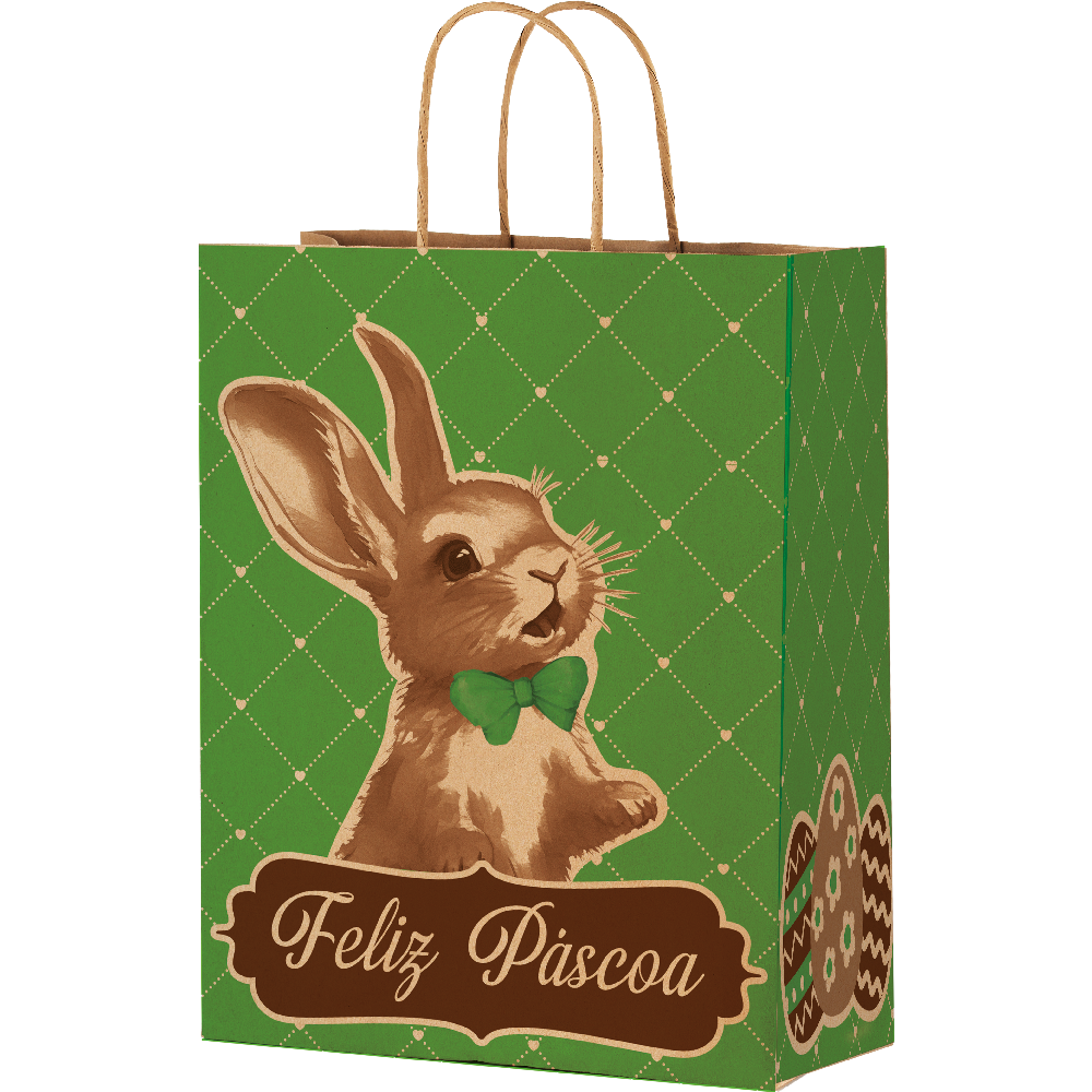 SACOLA DE PAPEL PP 18X14X7 PÁSCOA RABBIT
