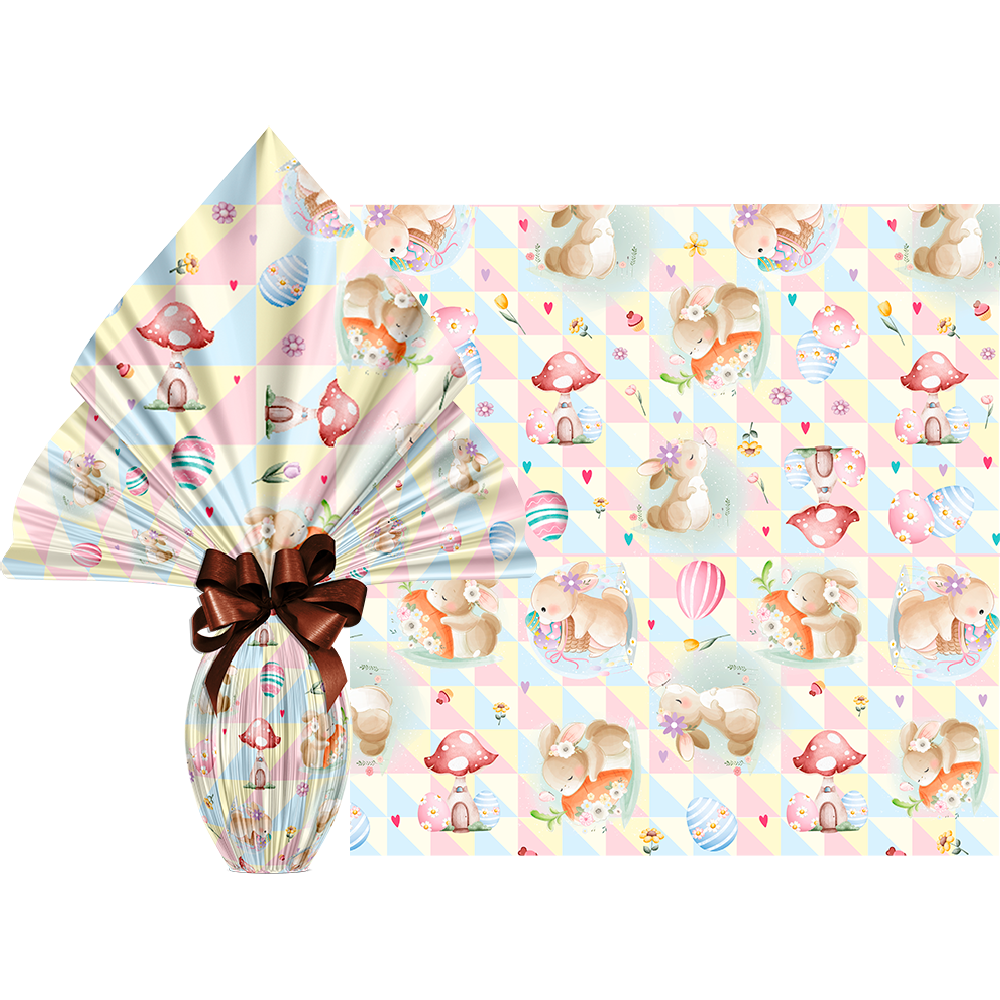 A Folha Poli Festcolor é ideal para embrulhar seus ovos de páscoa, além de outros tipo de produtos como canecas e outras lembranças, também muito utilizado para flores. Possui um mix variado de Cores e Estampas, também conhecido como Sujinho ou Poli Sujinho.