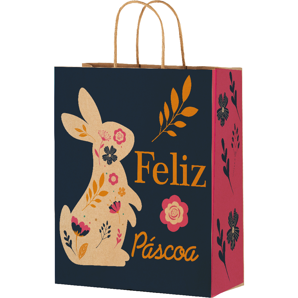 SACOLA DE PAPEL G 33X26X17 PASCOA COELHO FLORIDO
