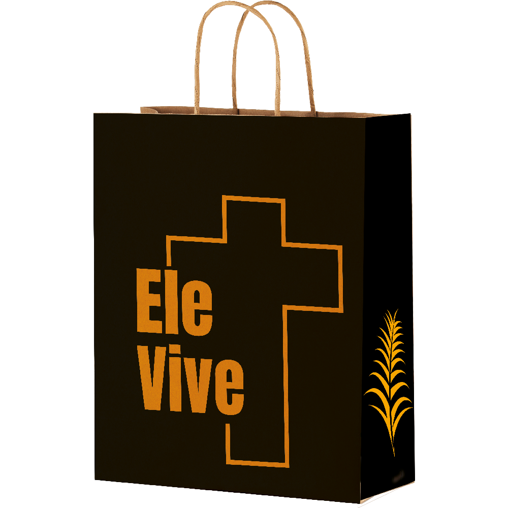 SACOLA DE PAPEL M 29X24X12 PASCOA ELE VIVE