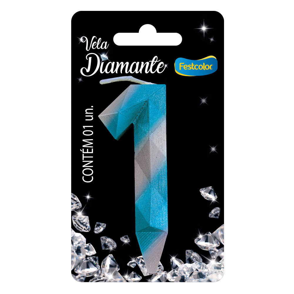 Produto Festcolor - VELA DIAMANTE AZUL E PRATEADA N° 1