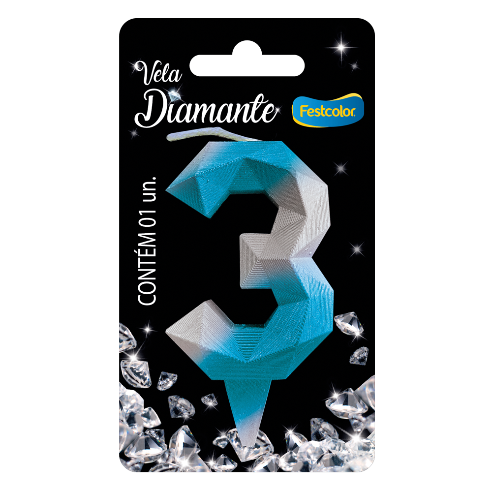 Produto Festcolor - VELA DIAMANTE AZUL E PRATEADA N° 3