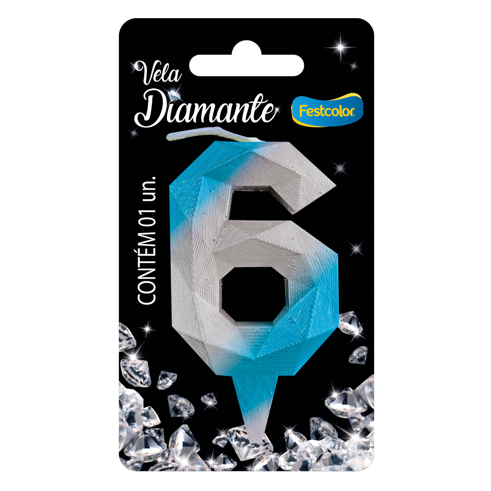 Produto Festcolor - VELA DIAMANTE AZUL E PRATEADA N° 6