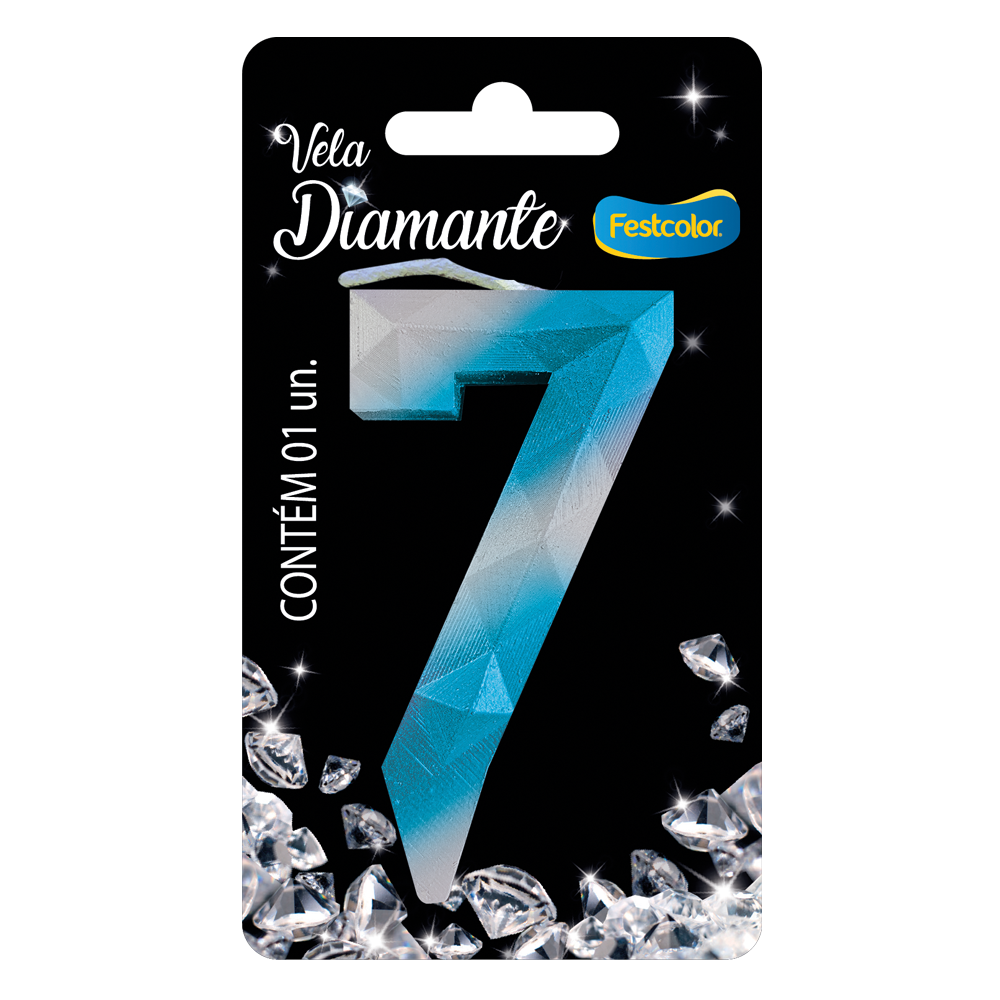 Produto Festcolor - VELA DIAMANTE AZUL E PRATEADA N° 7
