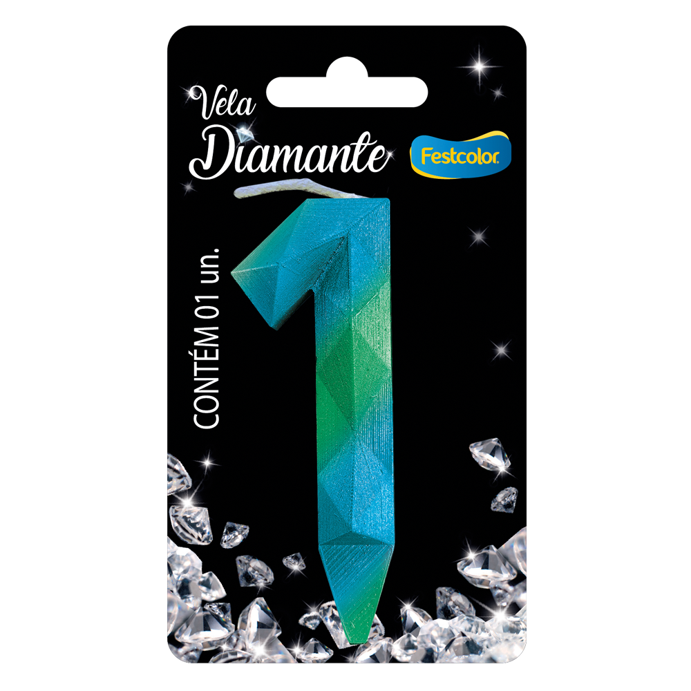 Produto Festcolor - VELA DIAMANTE AZUL E VERDE N° 1