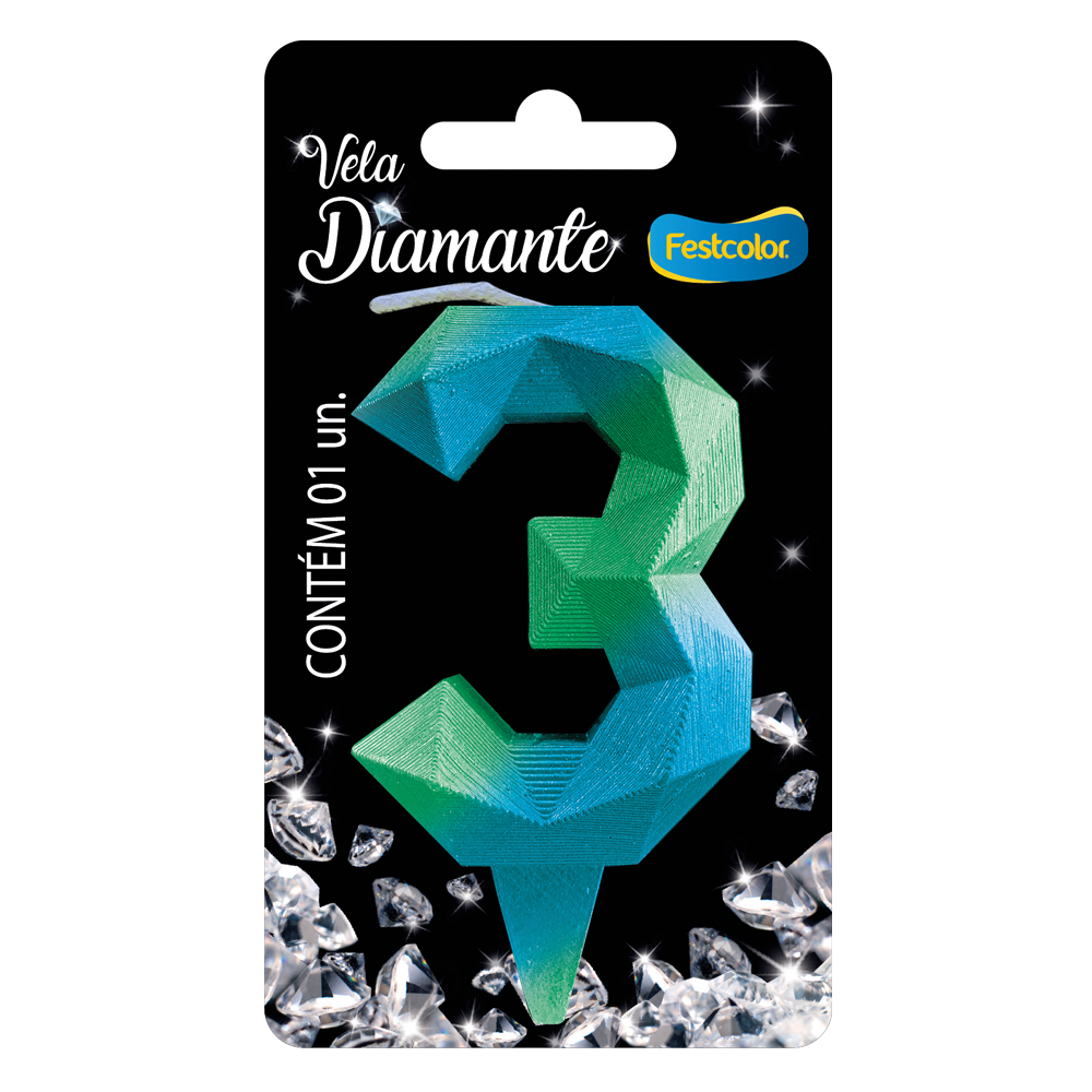 Produto Festcolor - VELA DIAMANTE AZUL E VERDE N° 3