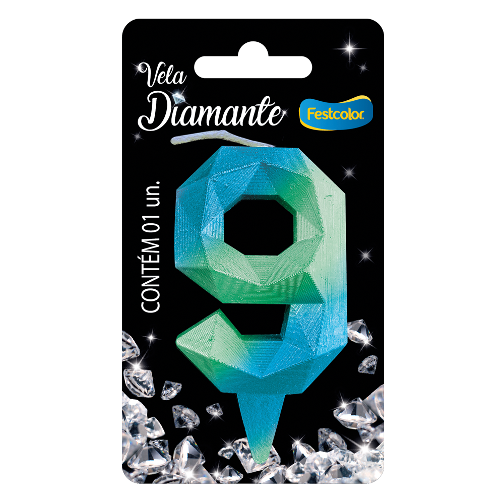 Produto Festcolor - VELA DIAMANTE AZUL E VERDE N° 9