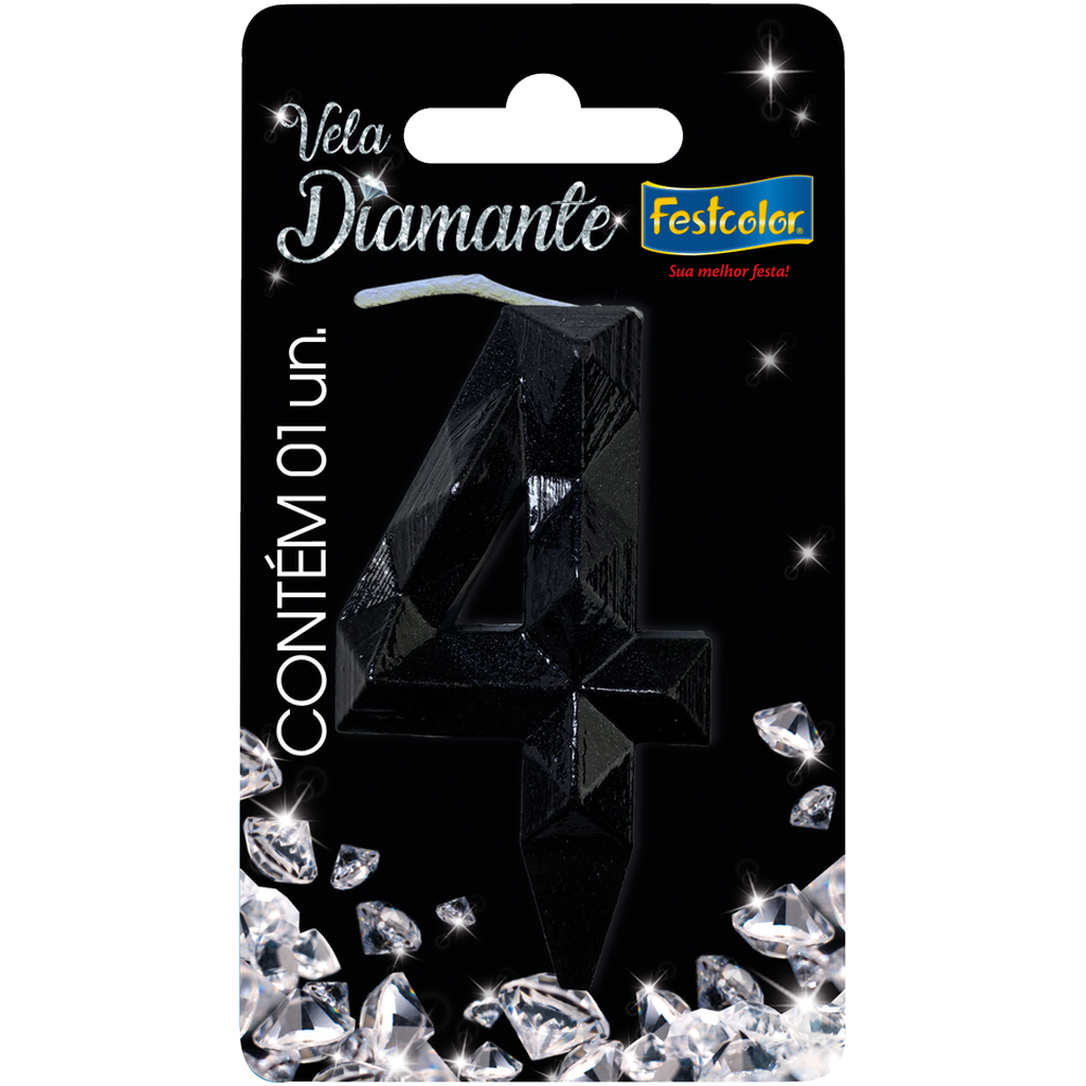 Produto Festcolor - VELA DIAMANTE PRETA N° 4