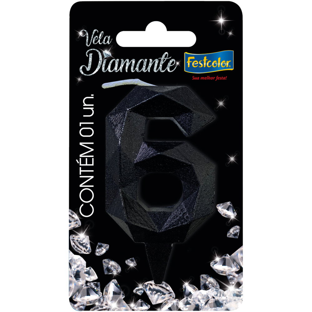Produto Festcolor - VELA DIAMANTE PRETA N° 6