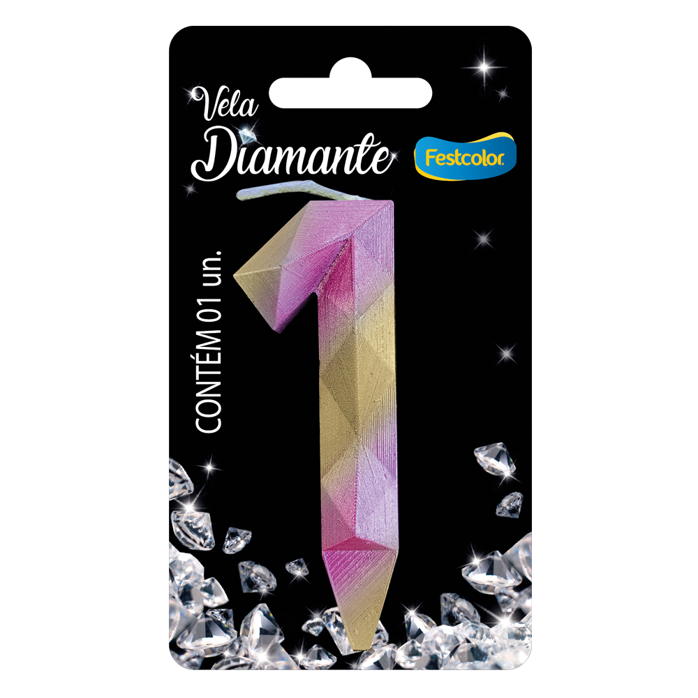 Produto Festcolor - VELA DIAMANTE ROSA E DOURADA N° 1