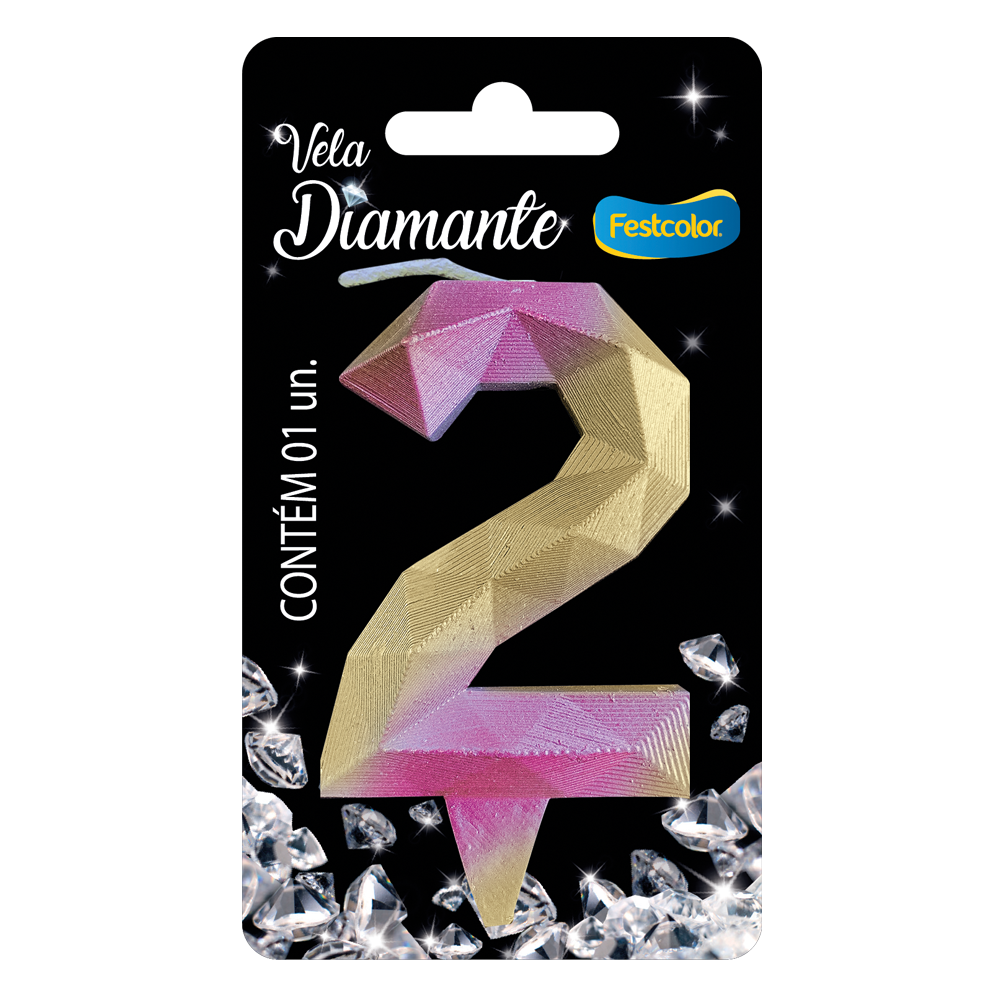 Produto Festcolor - VELA DIAMANTE ROSA E DOURADA N° 2