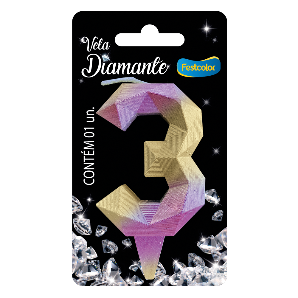 Produto Festcolor - VELA DIAMANTE ROSA E DOURADA N° 3