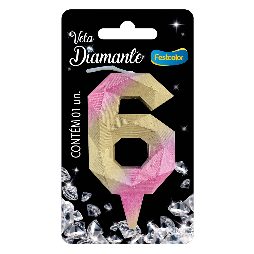Produto Festcolor - VELA DIAMANTE ROSA E DOURADA N° 6