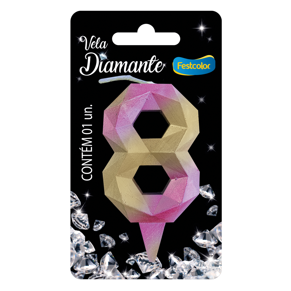Produto Festcolor - VELA DIAMANTE ROSA E DOURADA N° 8