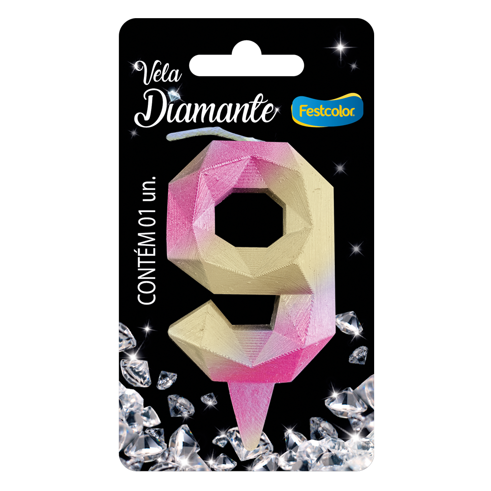Produto Festcolor - VELA DIAMANTE ROSA E DOURADA N° 9