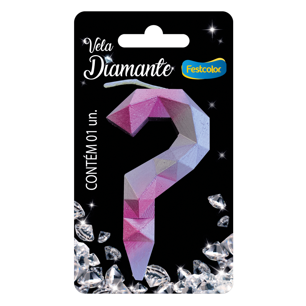 Produto Festcolor - VELA DIAMANTE ROSA E PRATEADA INTERROGAÇÃO