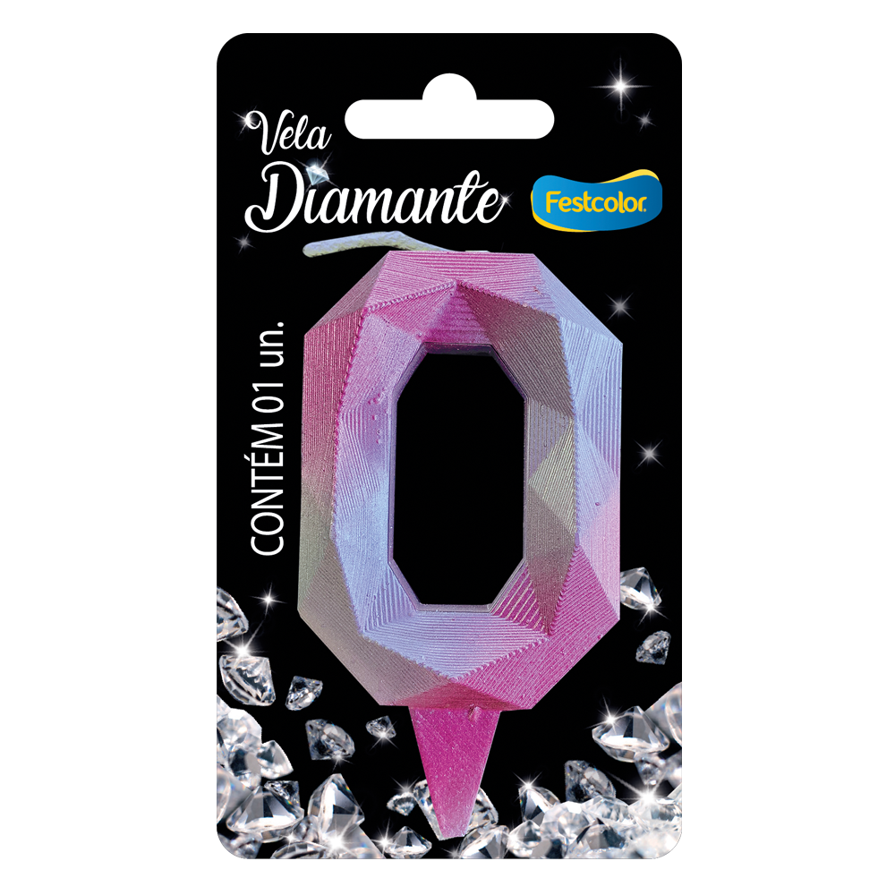 Produto Festcolor - VELA DIAMANTE ROSA E PRATEADA N° 0