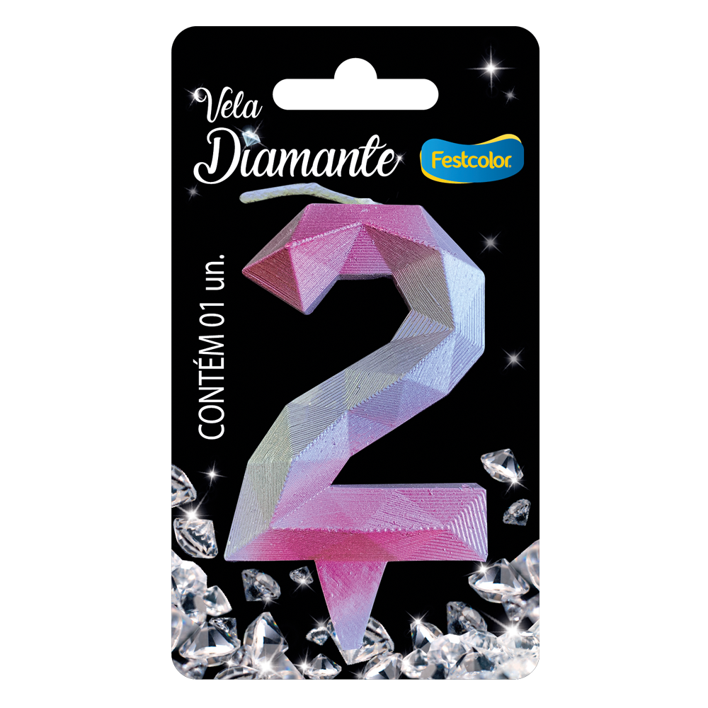 Produto Festcolor - VELA DIAMANTE ROSA E PRATEADA N° 2
