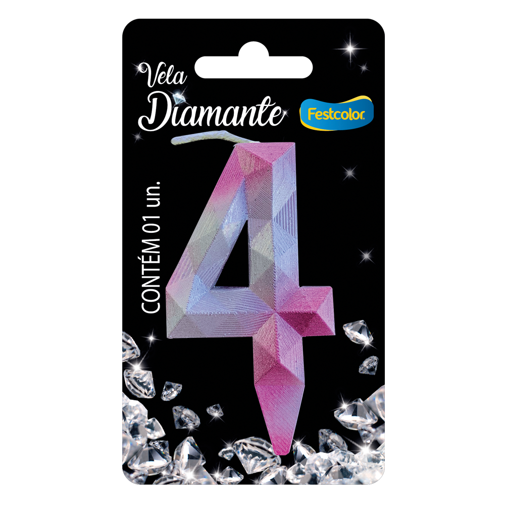 Produto Festcolor - VELA DIAMANTE ROSA E PRATEADA N° 4
