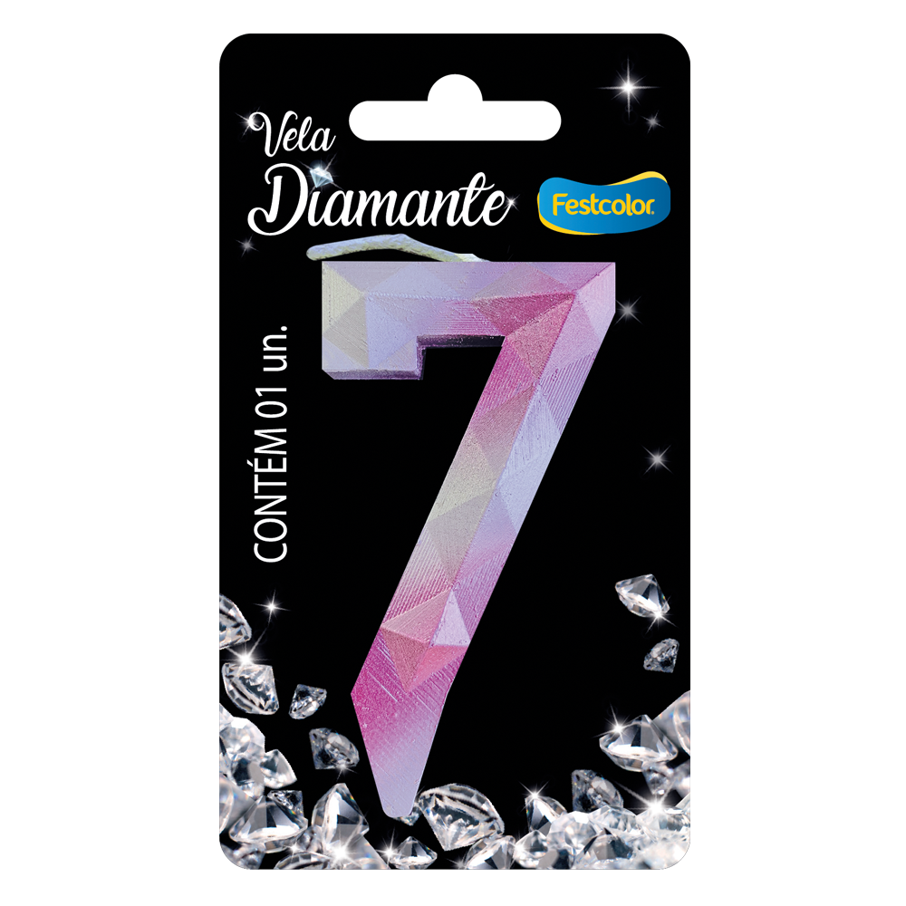 Produto Festcolor - VELA DIAMANTE ROSA E PRATEADA N° 7