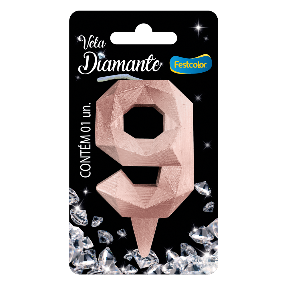 Produto Festcolor - VELA DIAMANTE ROSE GOLD N° 9