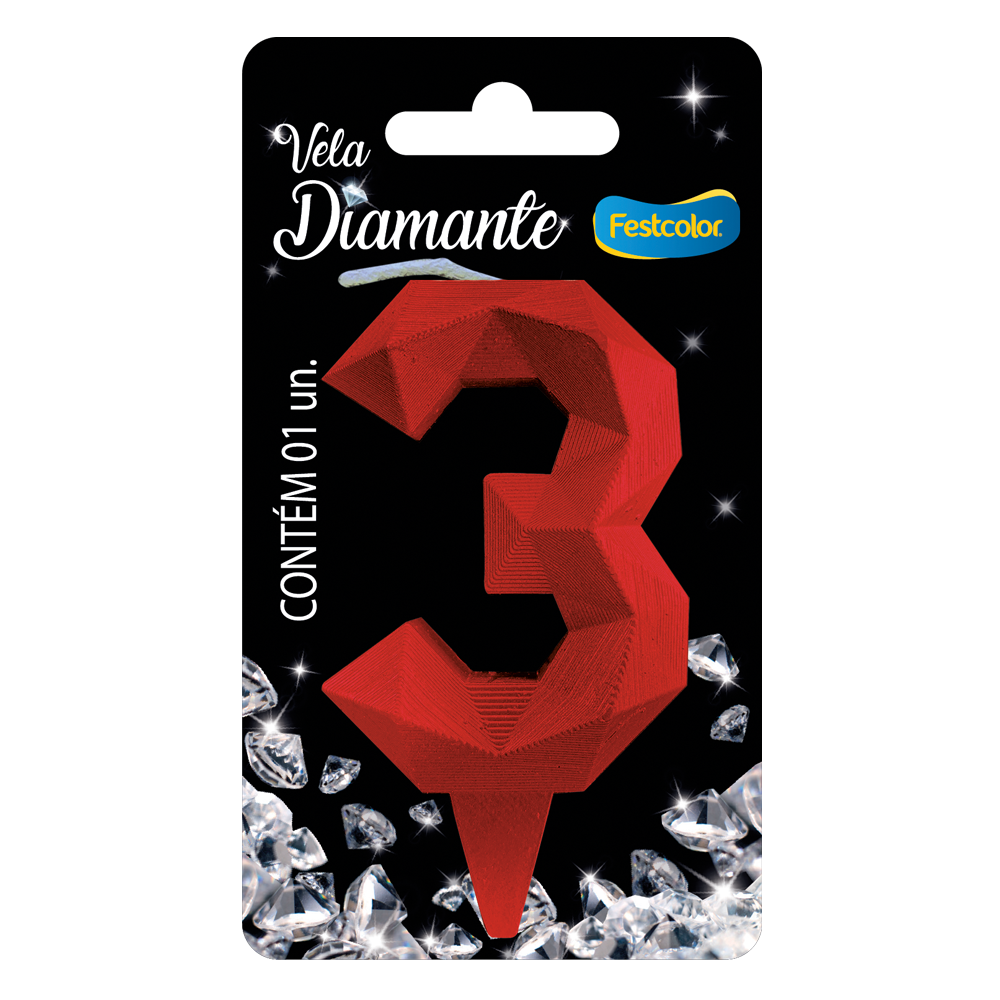 Produto Festcolor - VELA DIAMANTE VERMELHA N° 3