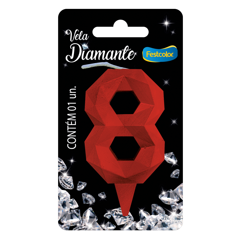 Produto Festcolor - VELA DIAMANTE VERMELHA N° 8