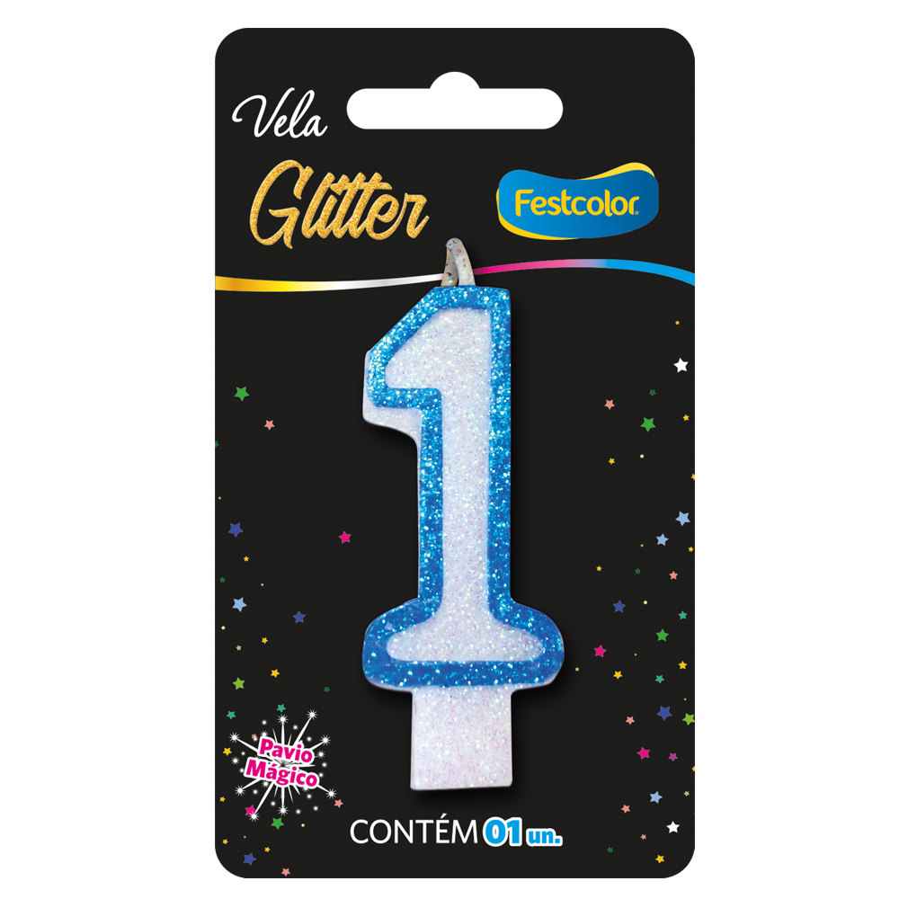 Produto Festcolor - VELA GLITTER AZUL N° 1