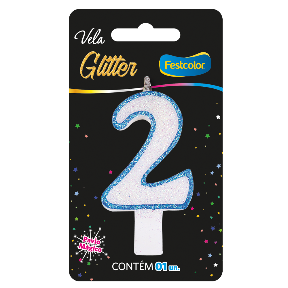 Produto Festcolor - VELA GLITTER AZUL N° 2