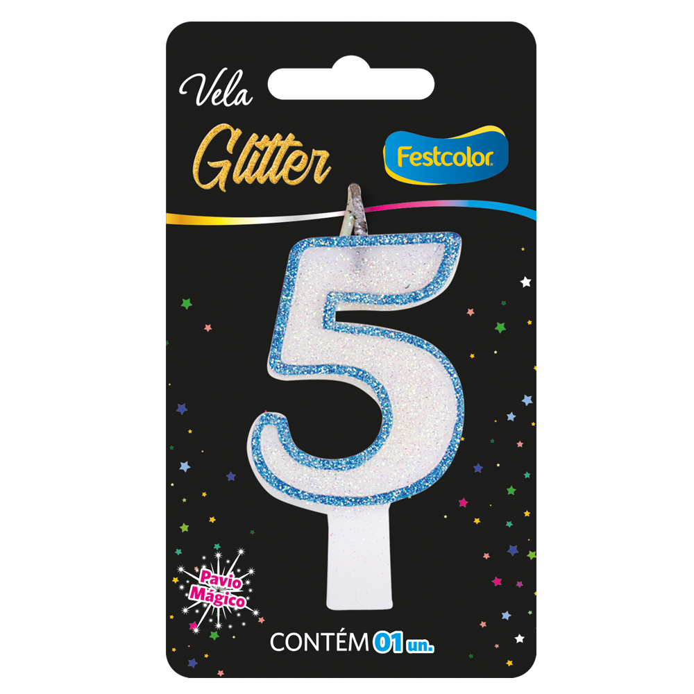 Produto Festcolor - VELA GLITTER AZUL N° 5