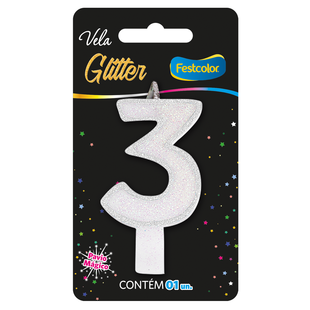 Produto Festcolor - VELA GLITTER BRANCA N° 3