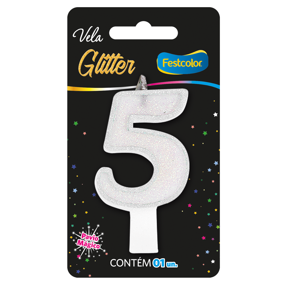 Produto Festcolor - VELA GLITTER BRANCA N° 5