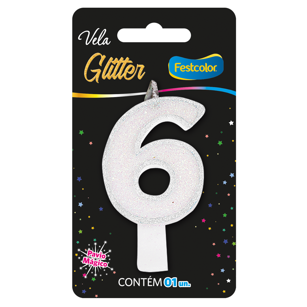 Produto Festcolor - VELA GLITTER BRANCA N° 6
