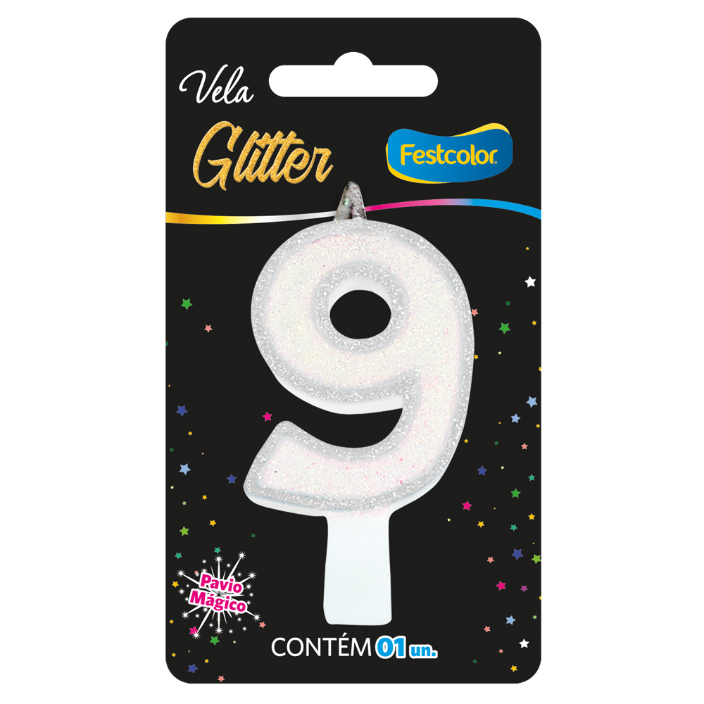 VELA GLITTER BRANCA N° 9