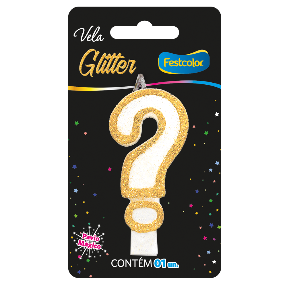 Produto Festcolor - VELA GLITTER DOURADO INTERROGAÇÃO