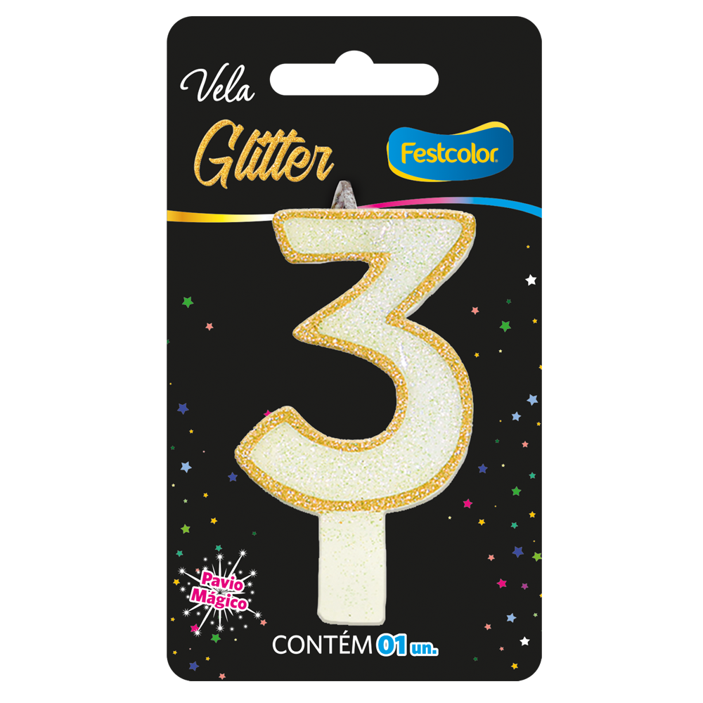 Produto Festcolor - VELA GLITTER DOURADO N° 3