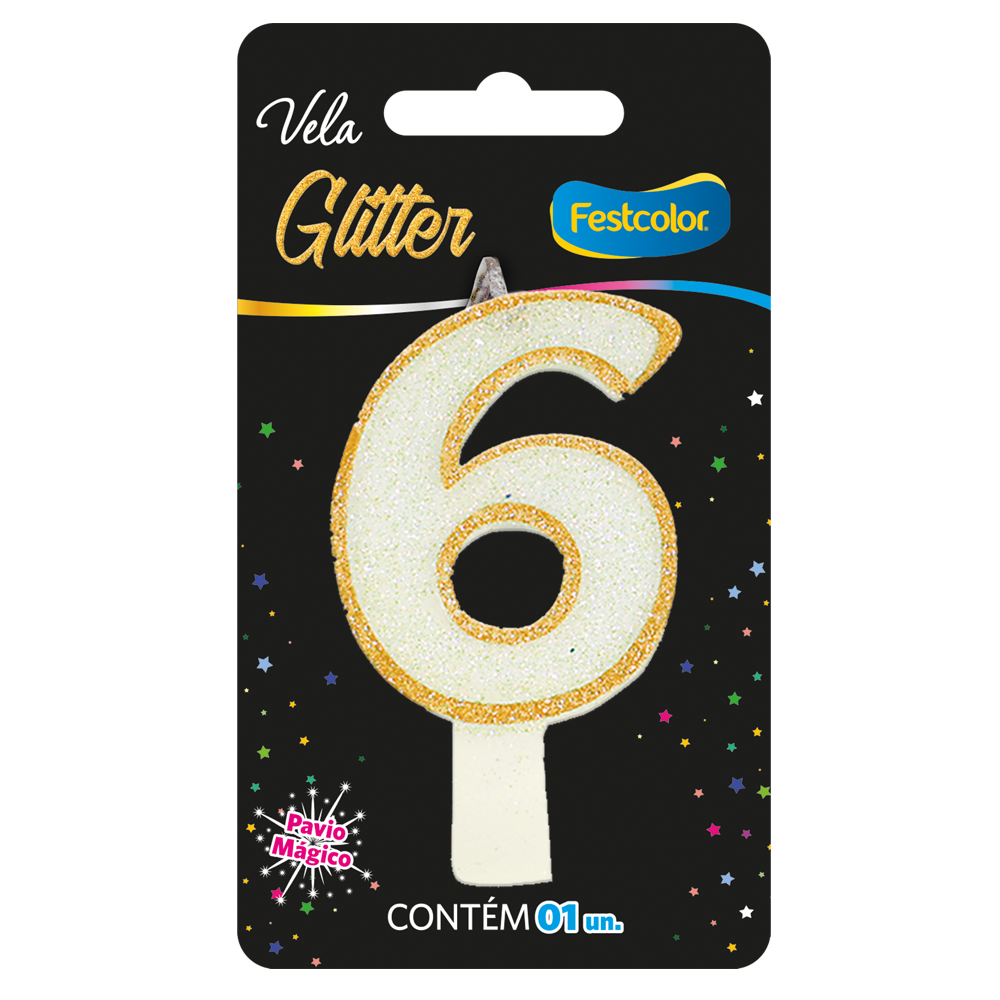 Produto Festcolor - VELA GLITTER DOURADO N° 6