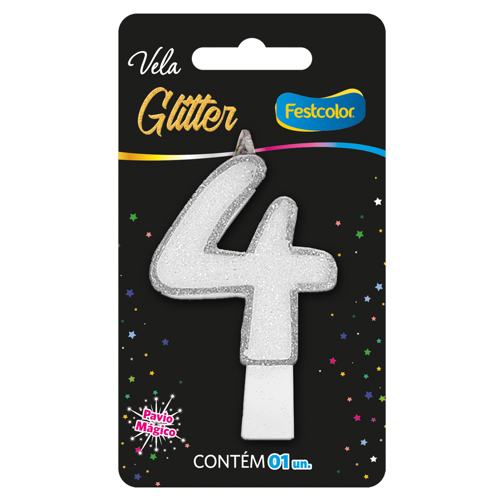 Produto Festcolor - VELA GLITTER PRATA N° 4
