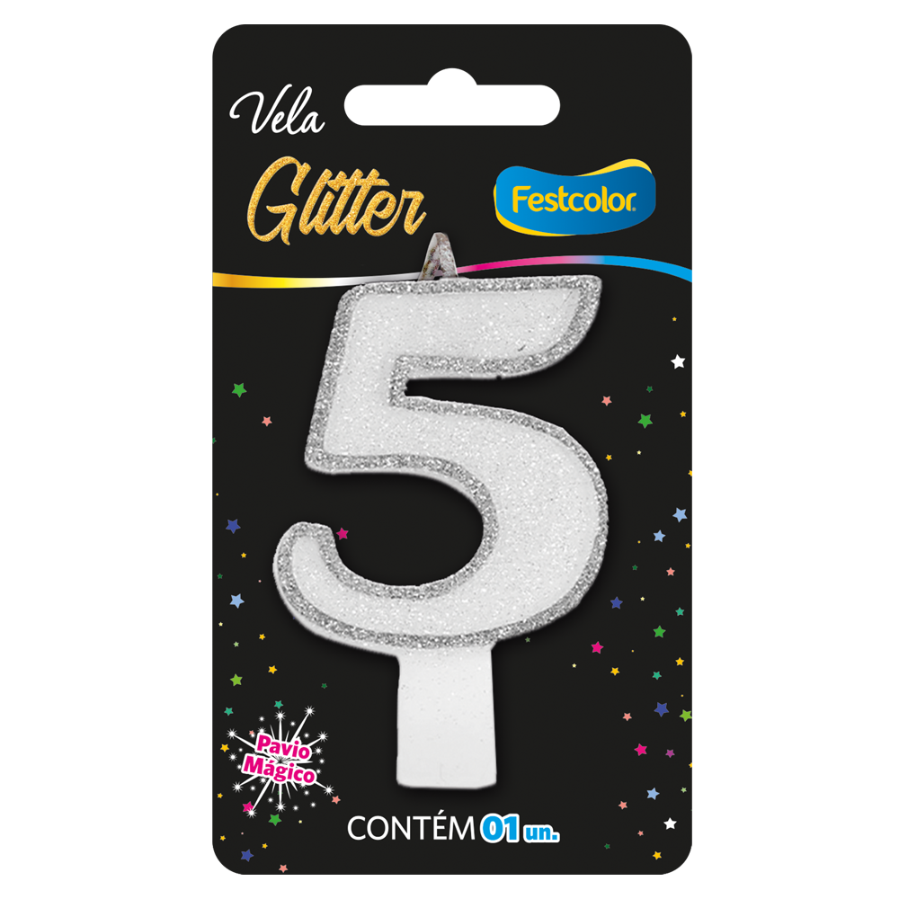 Produto Festcolor - VELA GLITTER PRATA N° 5