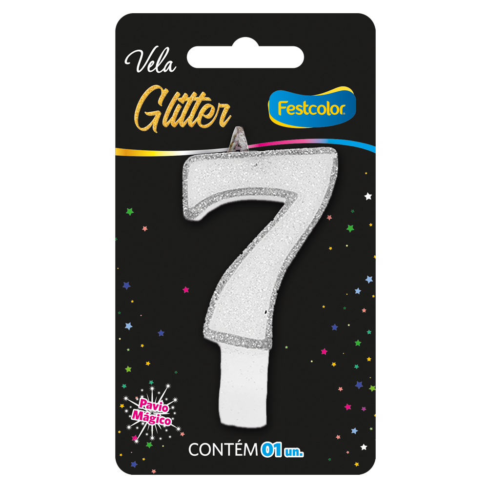 Produto Festcolor - VELA GLITTER PRATA N° 7