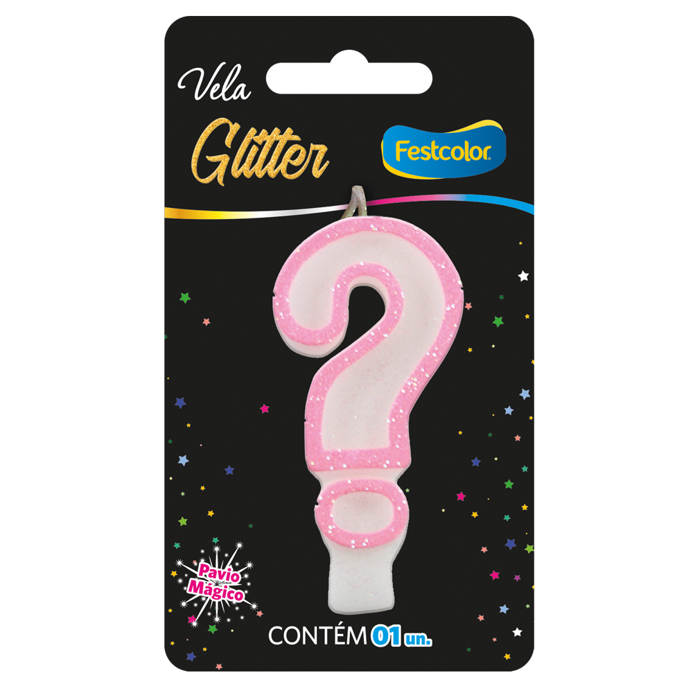 Produto Festcolor - VELA GLITTER ROSA INTERROGAÇÃO