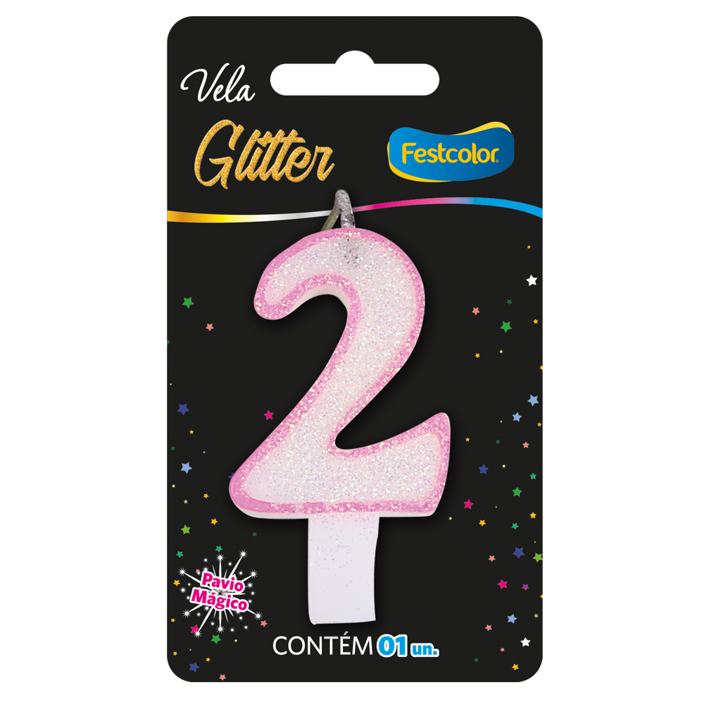 Produto Festcolor - VELA GLITTER ROSA N° 2
