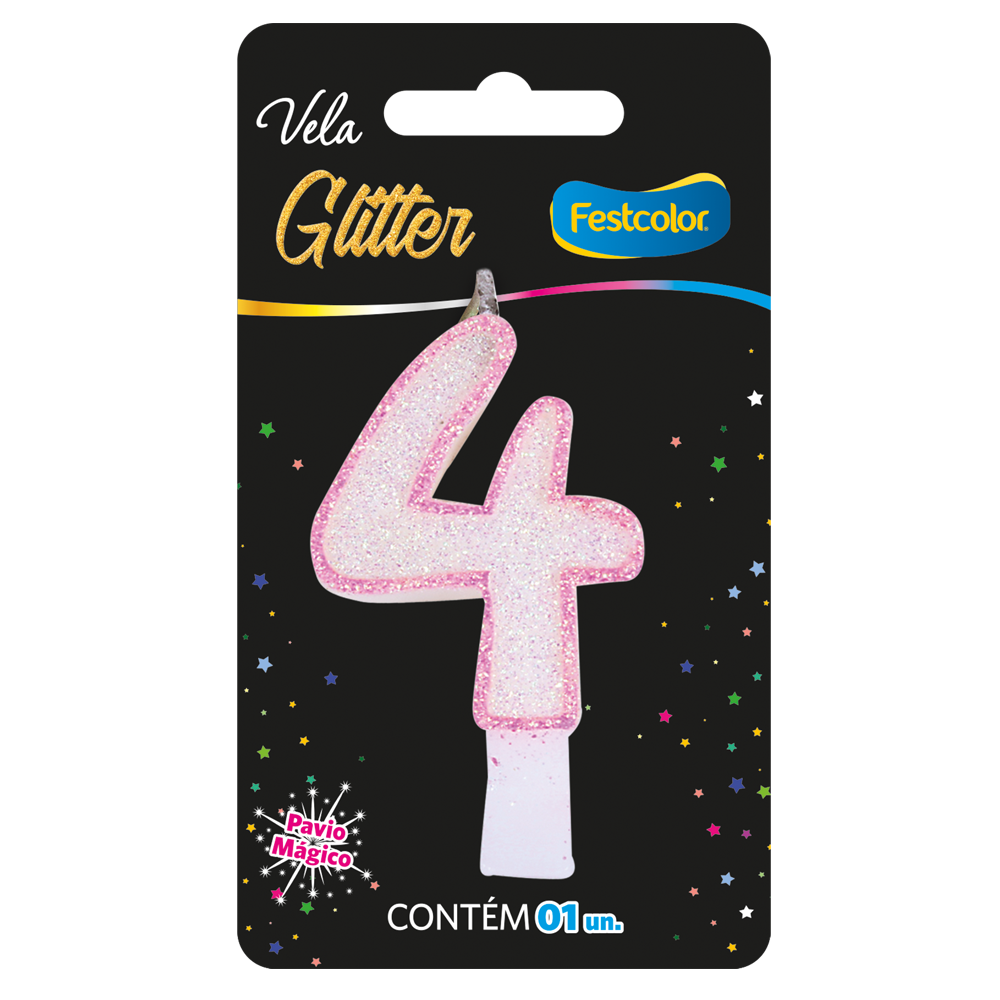 Produto Festcolor - VELA GLITTER ROSA N° 4
