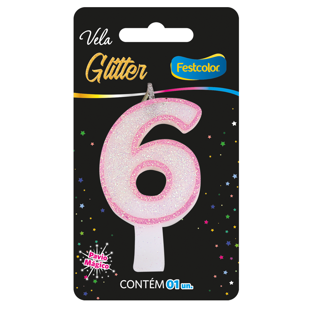 Produto Festcolor - VELA GLITTER ROSA N° 6