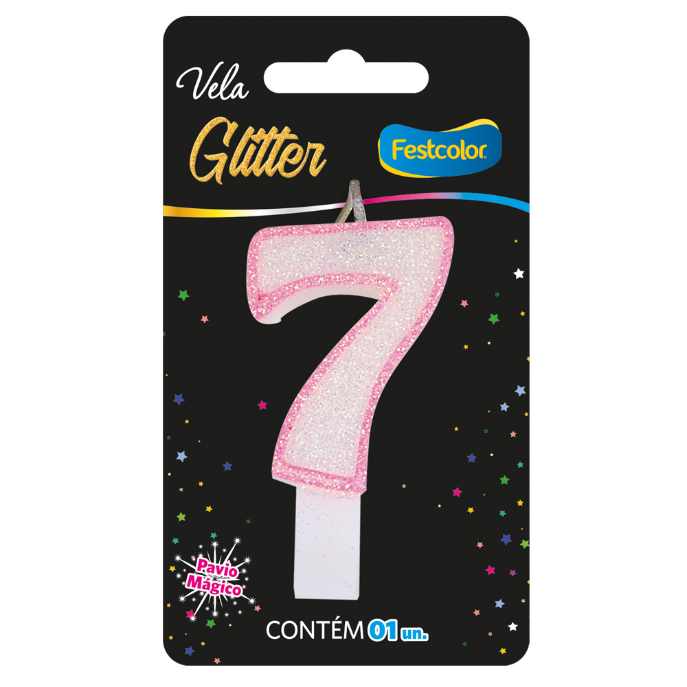 Produto Festcolor - VELA GLITTER ROSA N° 7
