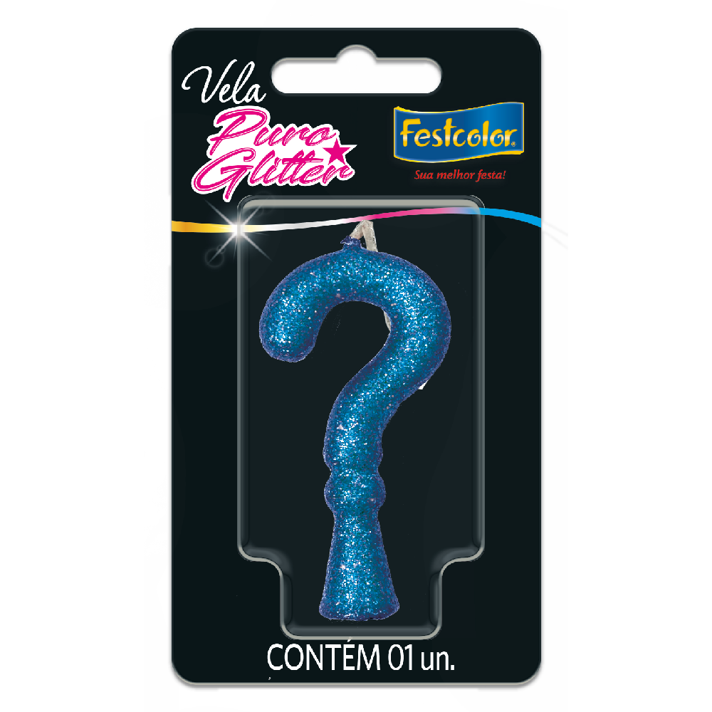 Produto Festcolor - VELA PURO GLITTER AZUL INTERROGAÇÃO