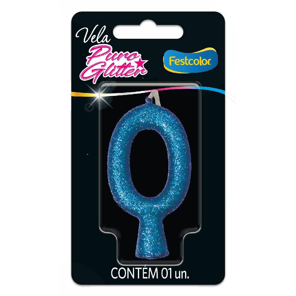 Produto Festcolor - VELA PURO GLITTER AZUL N° 0