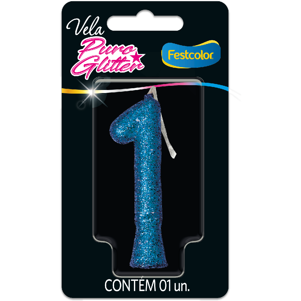 Produto Festcolor - VELA PURO GLITTER AZUL N° 1
